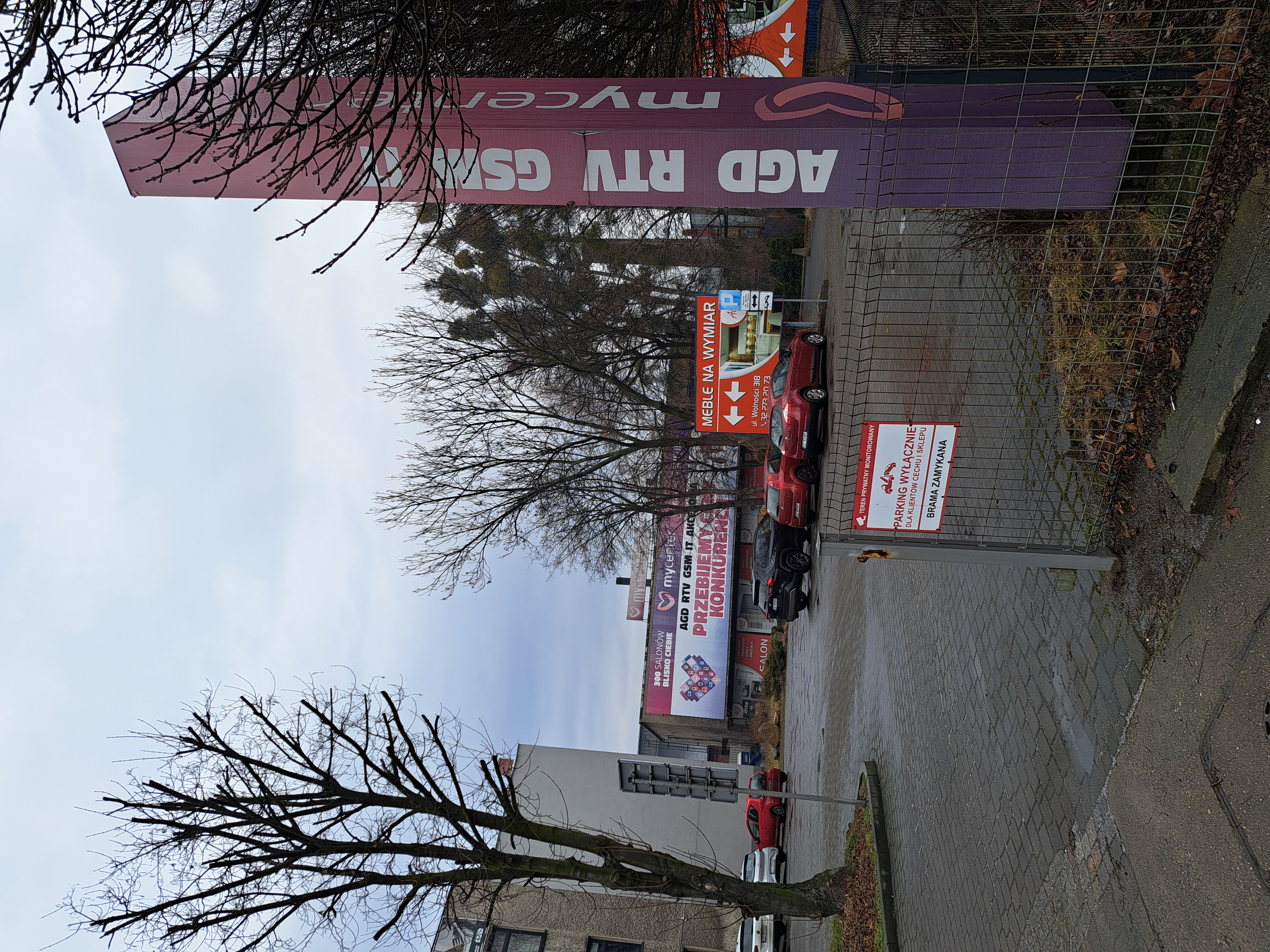 Dysponujemy pylonem o orientacyjnych wymiarach 350x60x30 cm, który ma trzy ścianki widoczne od strony chodnika, ulicy Wolności i parkingu oraz jedną ściankę widoczną tylko od strony parkingu.